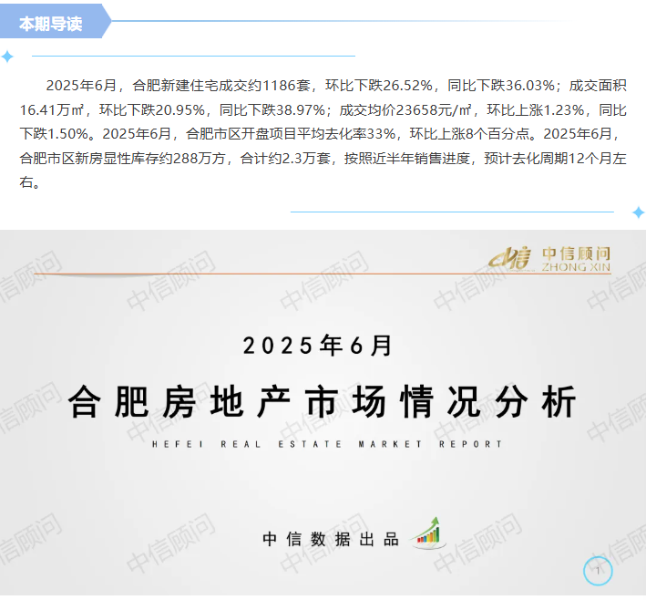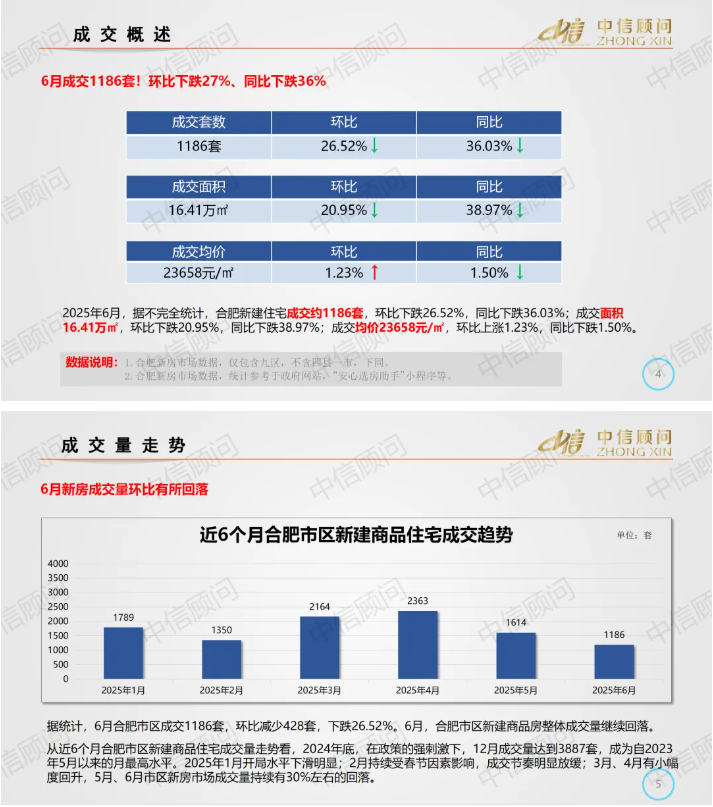 新房市場 | 2025年6月,合肥新房成交量環比下跌26.52%,成交價格環比上漲1.23%