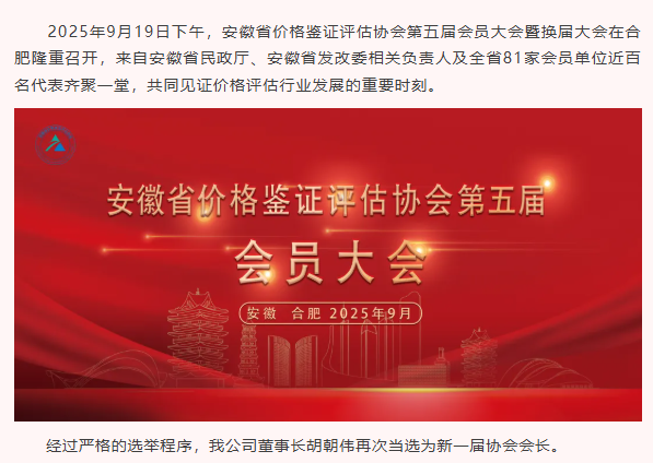 我公司胡朝偉董事長再次當選安徽省價格鑒證評估協會新一屆會長